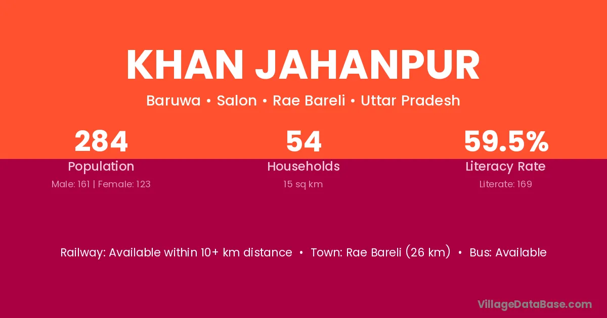 Rae Bareli (26 km) is the nearest town to Khan Jahanpur village for major economic activities and is located approximately 26 km away.