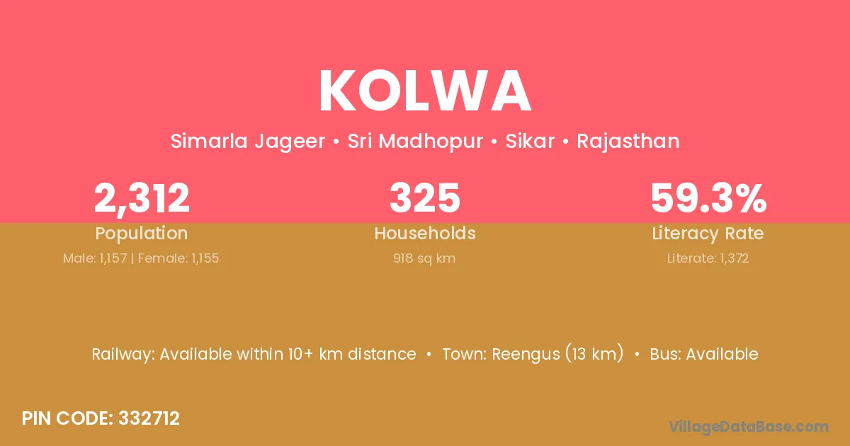 Rae Bareli (32 km) is the nearest town to Kolwa village for major economic activities and is located approximately 32 km away.
