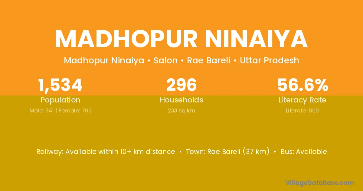 Rae Bareli (37 km) is the nearest town to Madhopur Ninaiya village for major economic activities and is located approximately 37 km away.