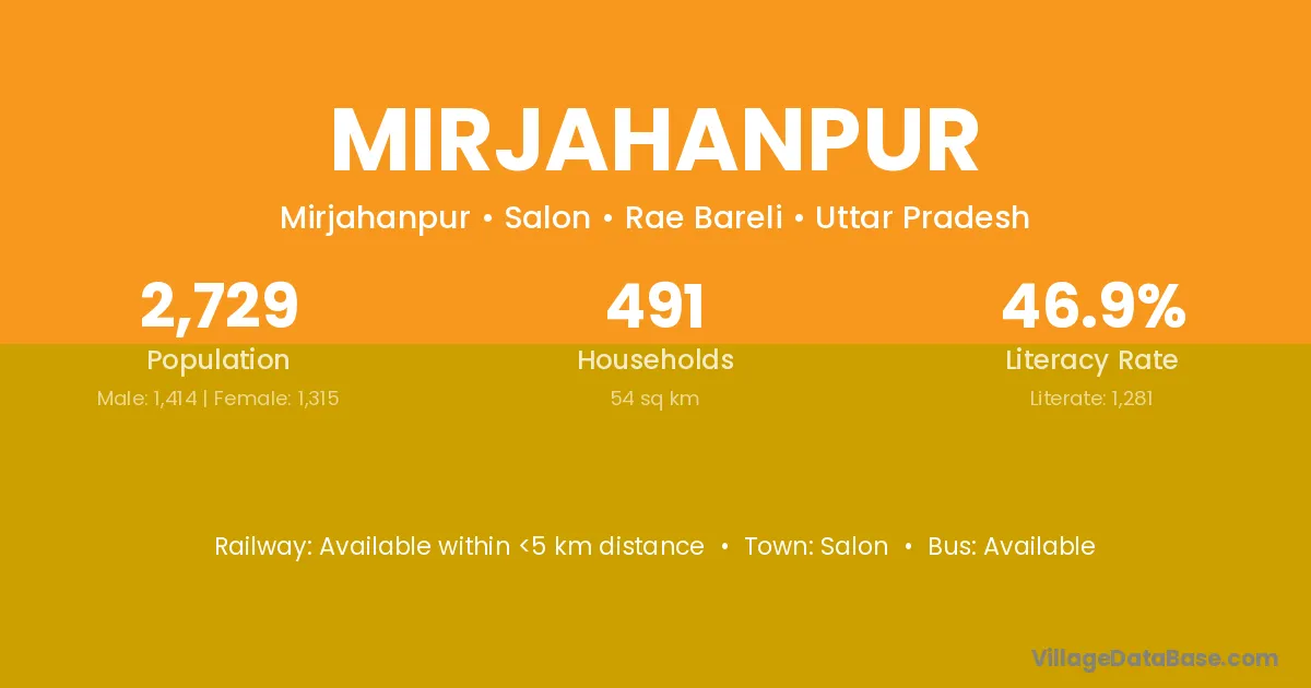 Mirjahanpur village has a total population of 2,729 people, of which 1,414 are males and 1,315 are females.