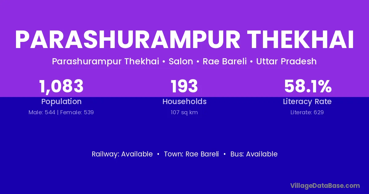 Parashurampur Thekhai village has a total population of 1,083 people, of which 544 are males and 539 are females.