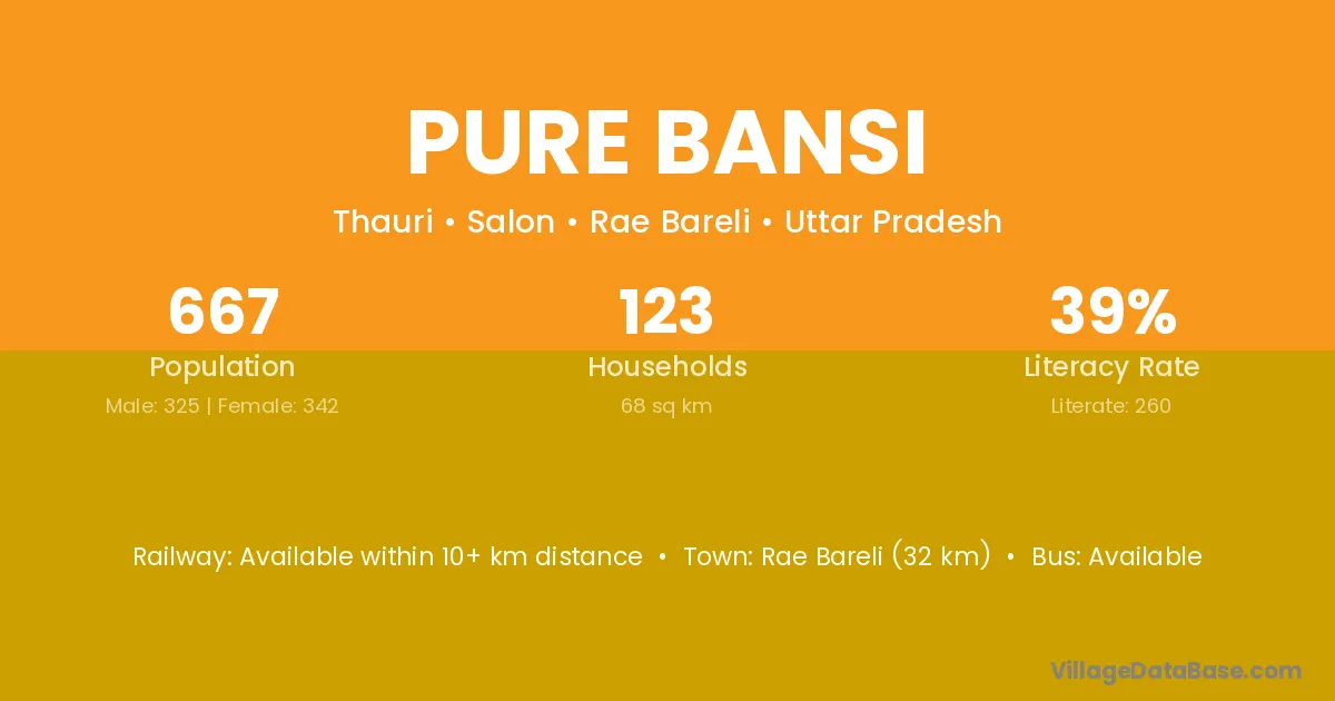 Pure Bansi village has a total population of 667 people, of which 325 are males and 342 are females.