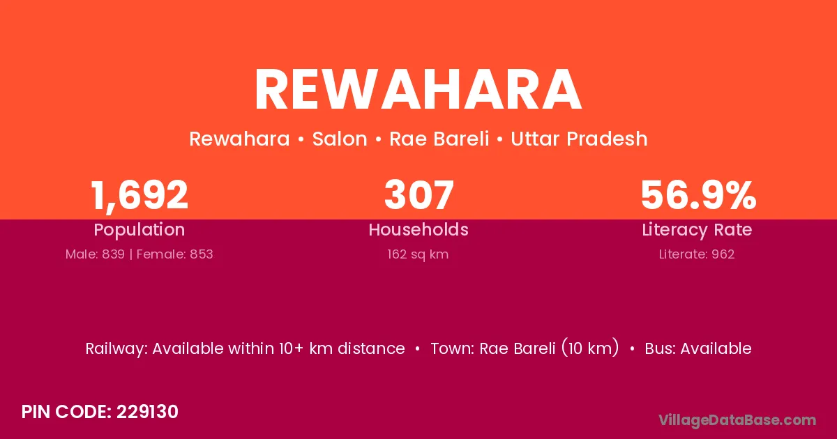 Rae Bareli (10 km) is the nearest town to Rewahara village for major economic activities and is located approximately 10 km away.