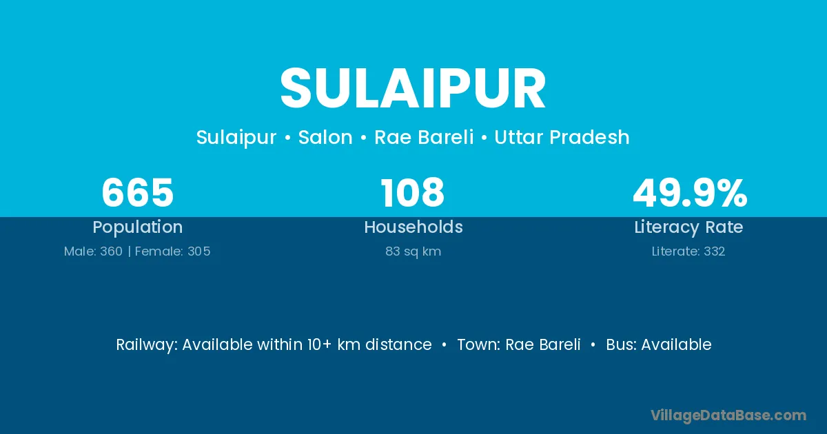 Sulaipur village has a total population of 665 people, of which 360 are males and 305 are females.