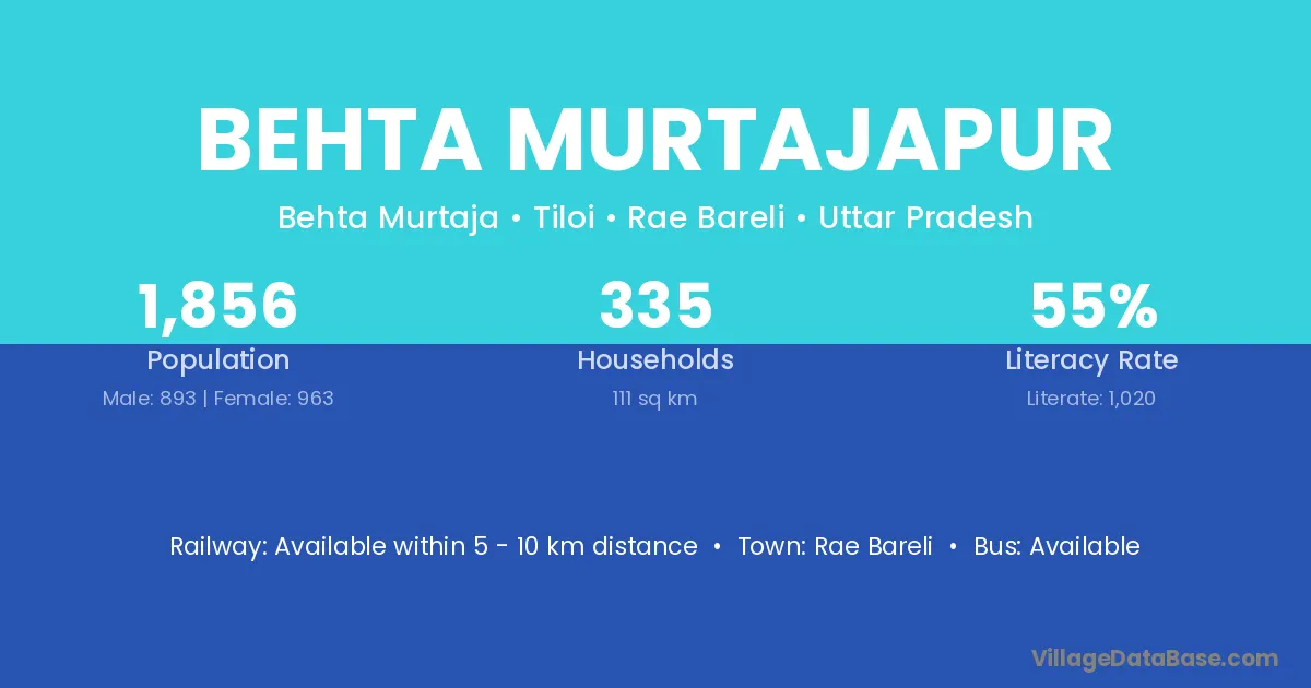Behta Murtajapur village has a total population of 1,856 people, of which 893 are males and 963 are females.