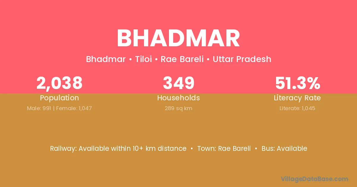 Rae Bareli is the nearest town to Bhadmar village for major economic activities