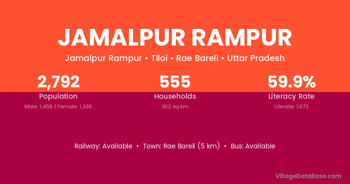Rae Bareli (5 km) is the nearest town to Jamalpur Rampur village for major economic activities and is located approximately 5 km away.