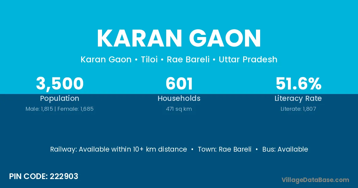 Rae Bareli is the nearest town to Karan Gaon village for major economic activities