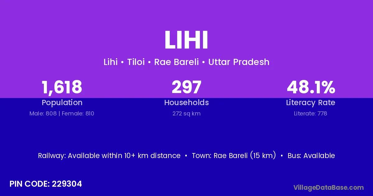 Rae Bareli (15 km) is the nearest town to Lihi village for major economic activities and is located approximately 15 km away.