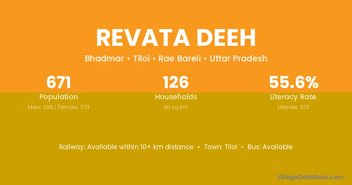 Revata Deeh village has a total population of 671 people, of which 298 are males and 373 are females.