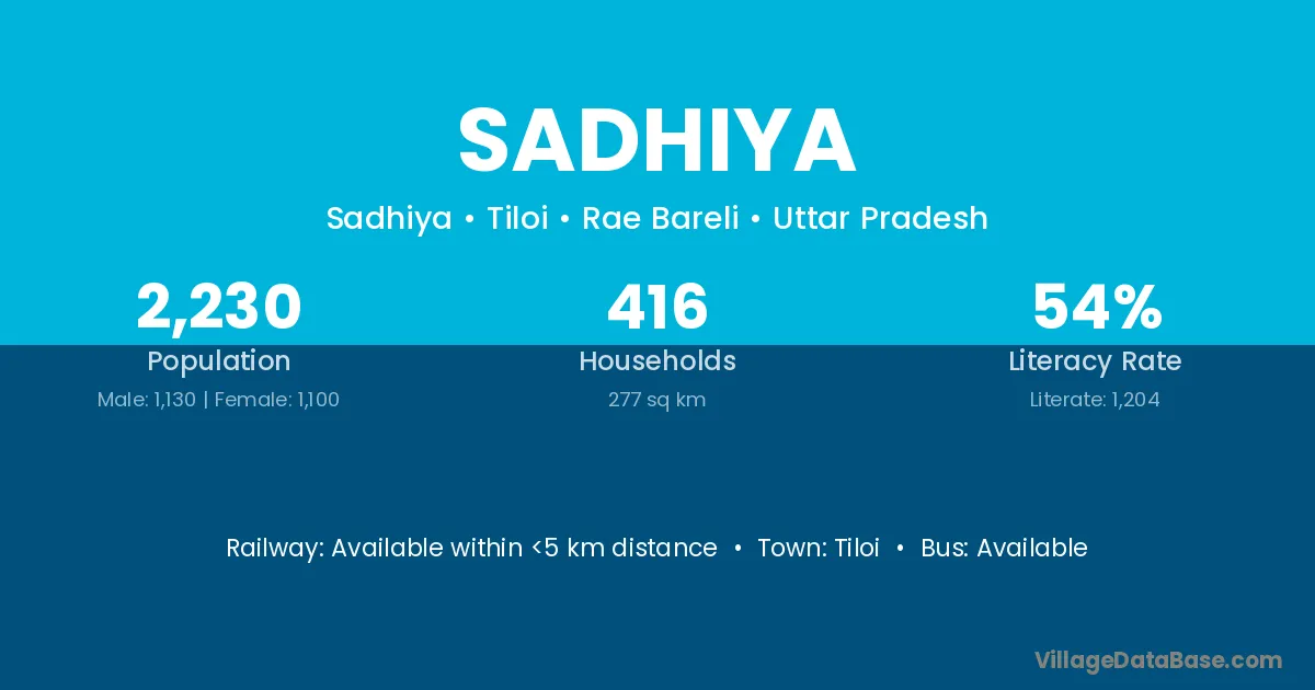 Sadhiya village is located in the Tiloi Tehsil of the Rae Bareli district in Uttar Pradesh .