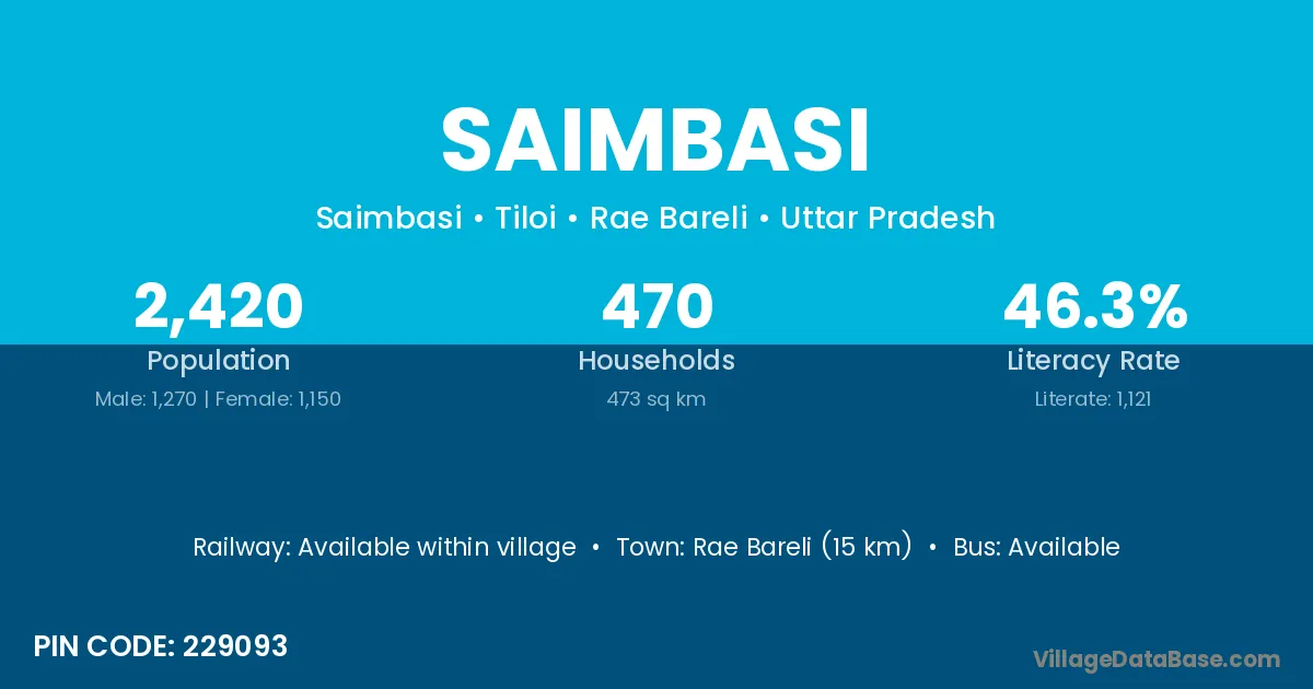 Rae Bareli (15 km) is the nearest town to Saimbasi village for major economic activities and is located approximately 15 km away.