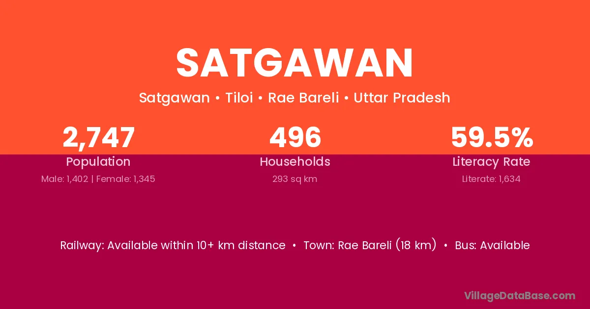 Rae Bareli (18 km) is the nearest town to Satgawan village for major economic activities and is located approximately 18 km away.