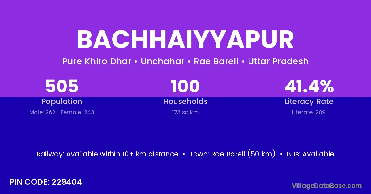 Rae Bareli (50 km) is the nearest town to Bachhaiyyapur village for major economic activities and is located approximately 50 km away.