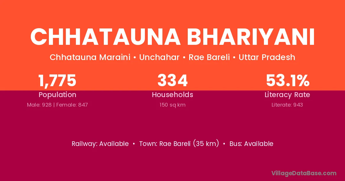 Rae Bareli (35 km) is the nearest town to Chhatauna Bhariyani village for major economic activities and is located approximately 35 km away.