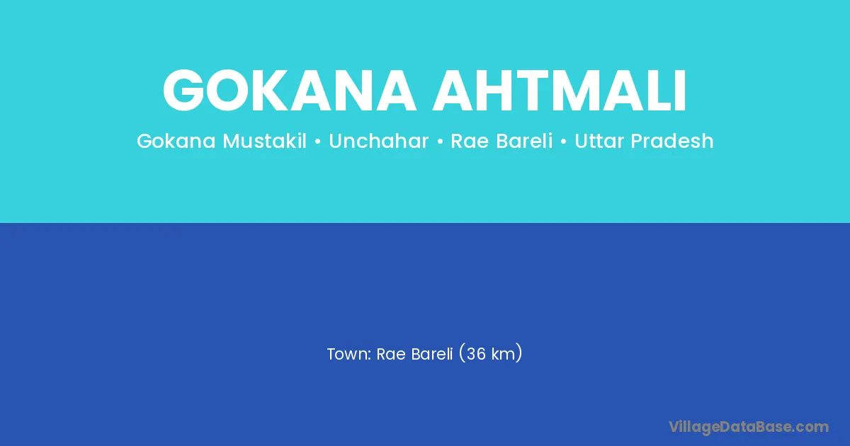 Rae Bareli (36 km) is the nearest town to Gokana Ahtmali village for major economic activities and is located approximately 36 km away.