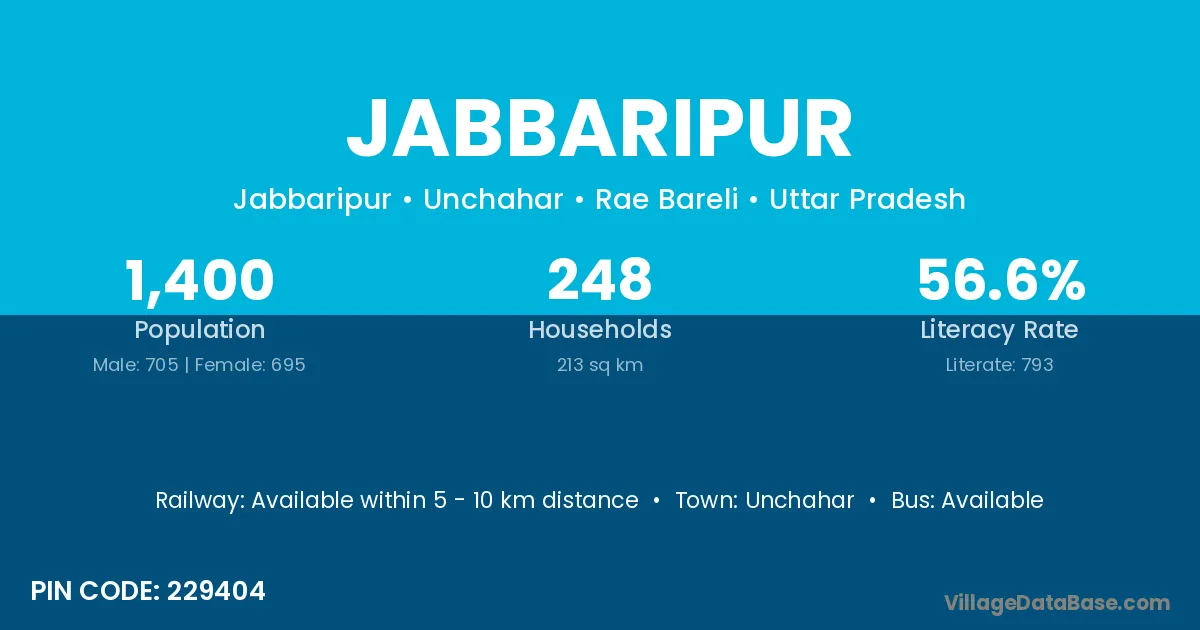 Unchahar is the nearest town to Jabbaripur village for major economic activities