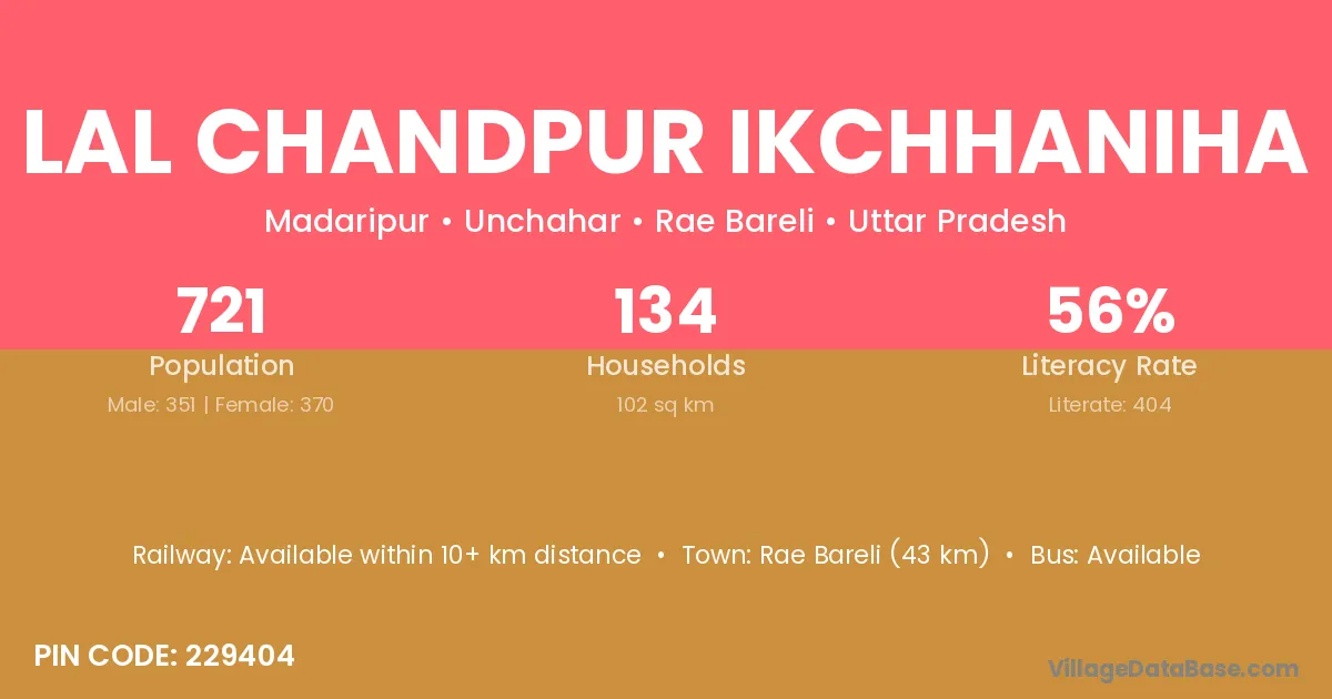 Rae Bareli (43 km) is the nearest town to Lal Chandpur Ikchhaniha village for major economic activities and is located approximately 43 km away.