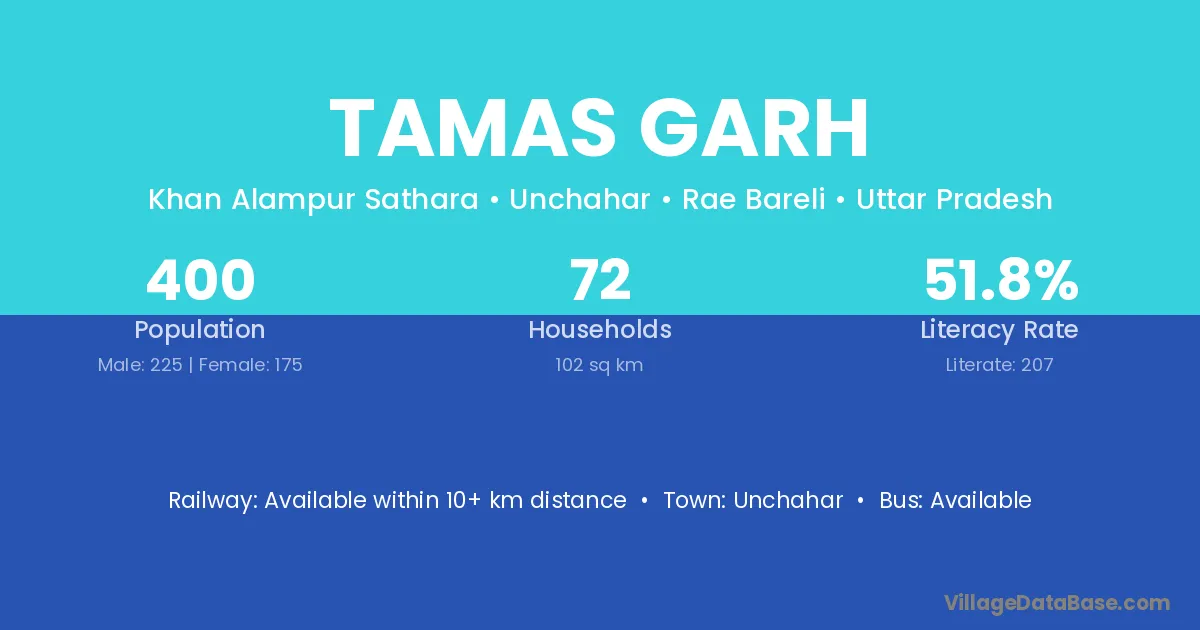 Unchahar is the nearest town to Tamas Garh village for major economic activities