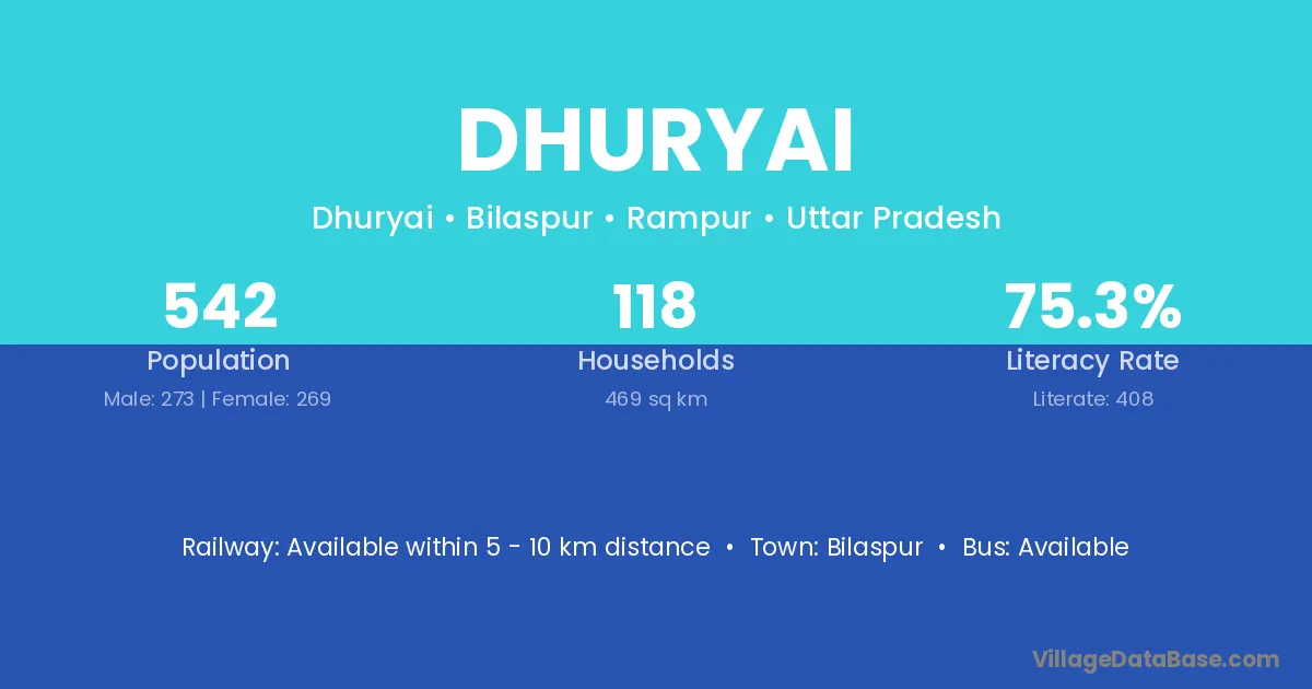 Dhuryai village has a total population of 542 people, of which 273 are males and 269 are females.