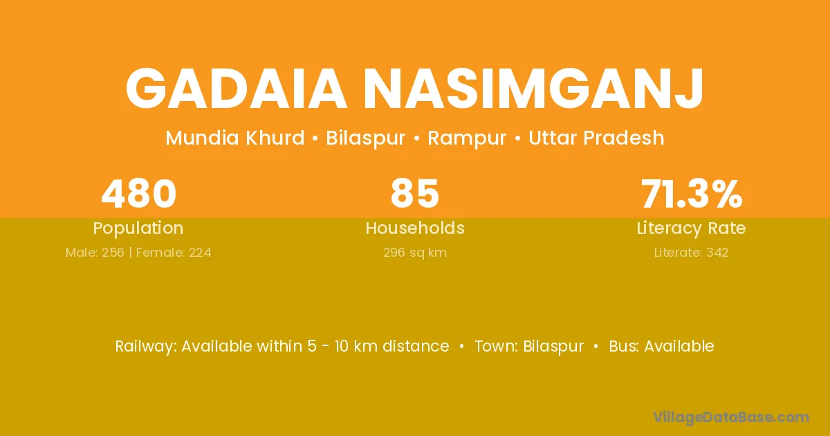 Gadaia Nasimganj village has a total population of 480 people, of which 256 are males and 224 are females.