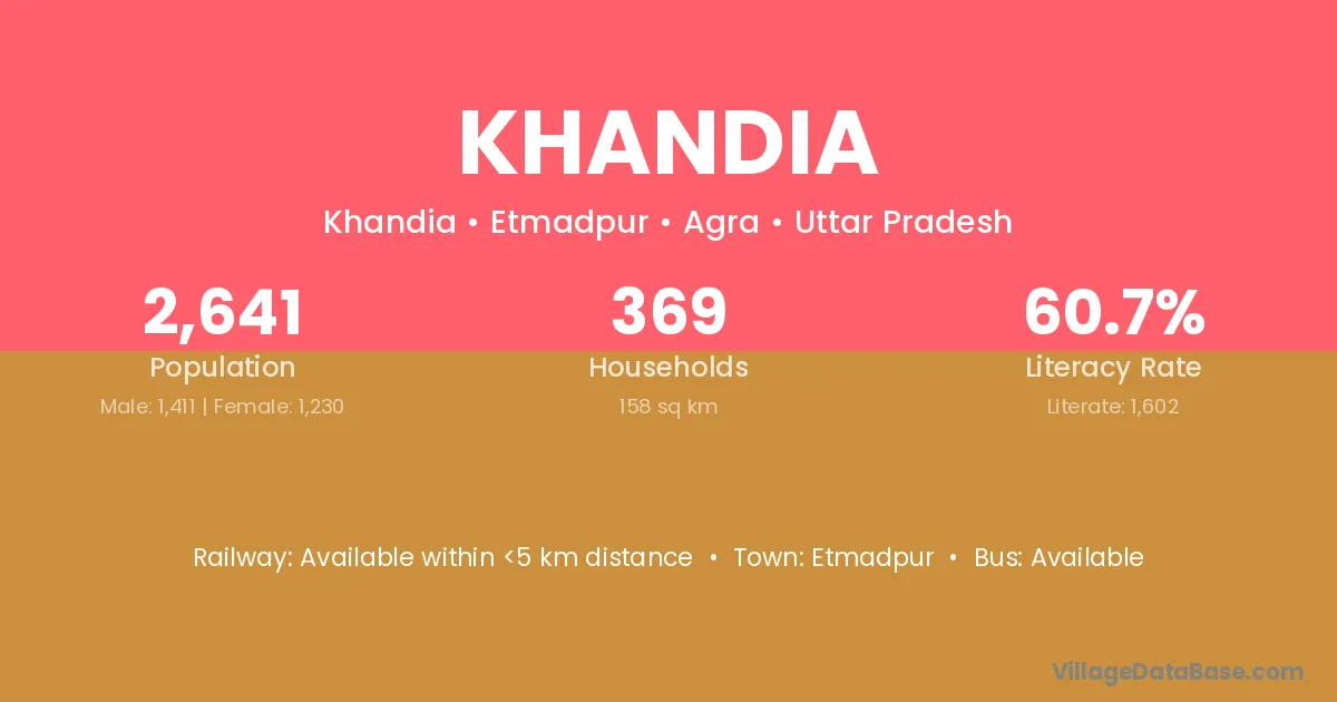 Vilashpur (15 km) is the nearest town to Khandia village for major economic activities and is located approximately 15 km away.