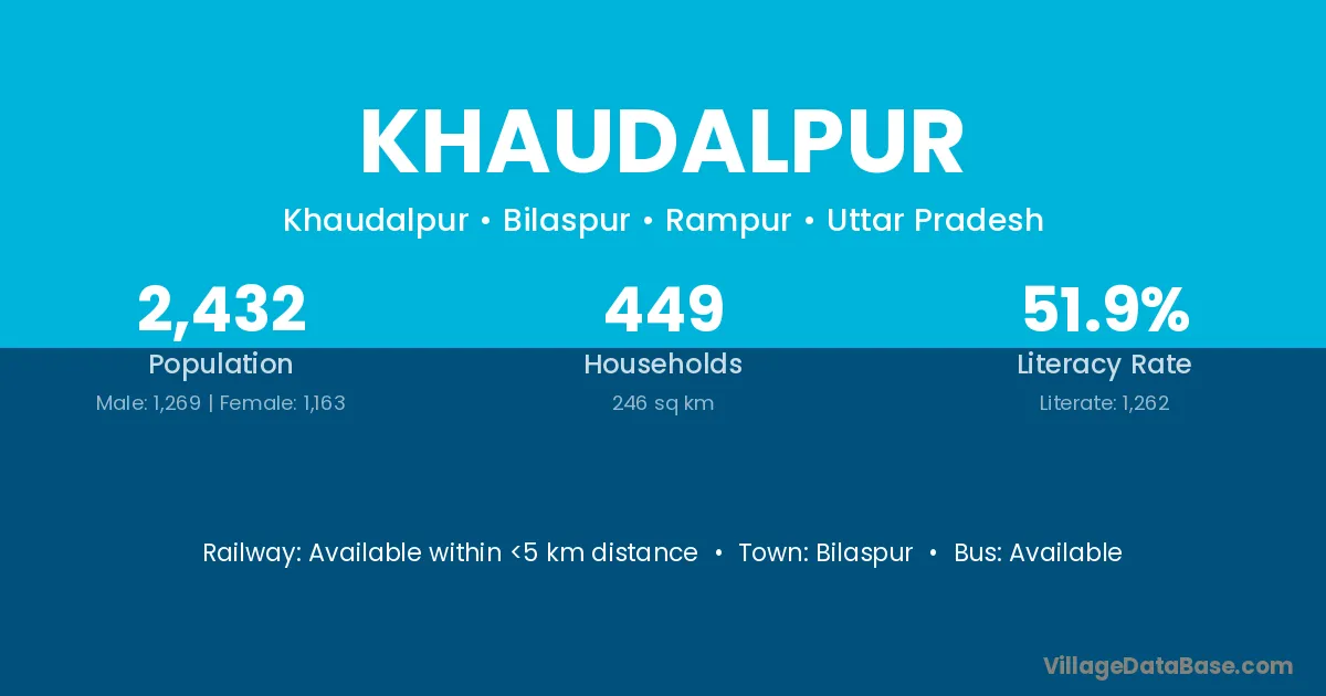 Khaudalpur village has a total population of 2,432 people, of which 1,269 are males and 1,163 are females.