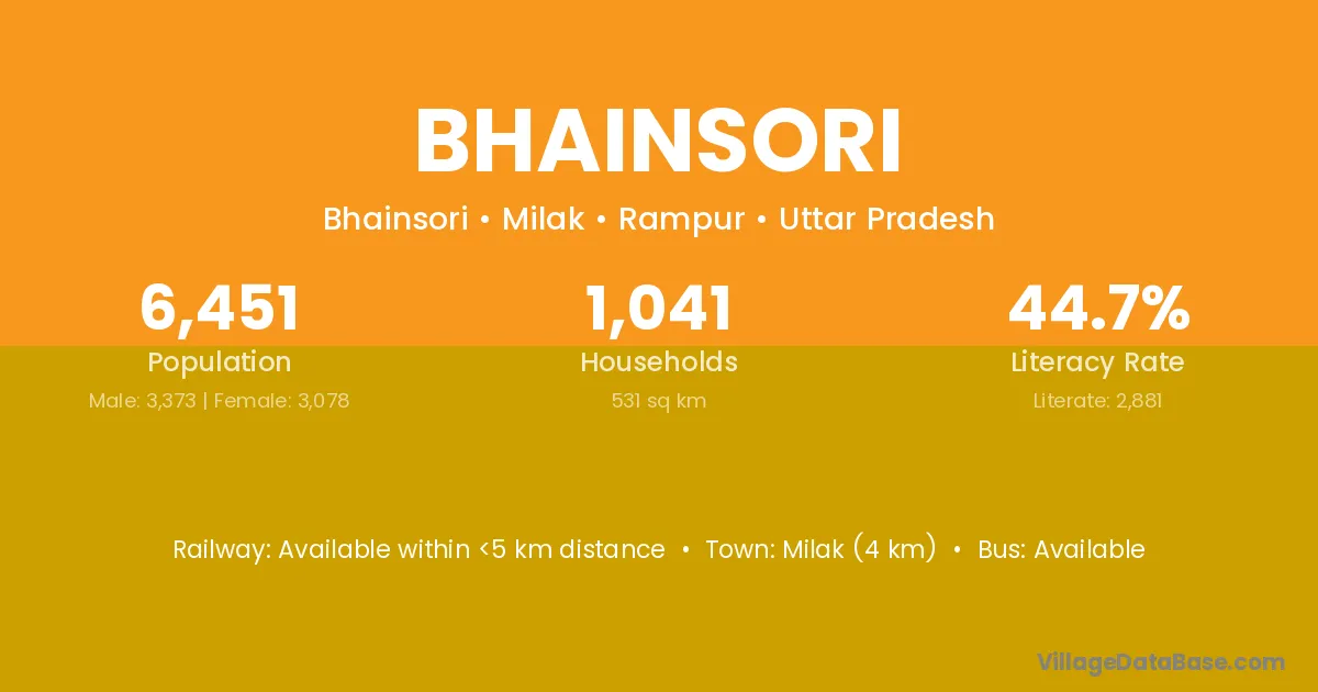 Milak (4 km) is the nearest town to Bhainsori village for major economic activities and is located approximately 4 km away.
