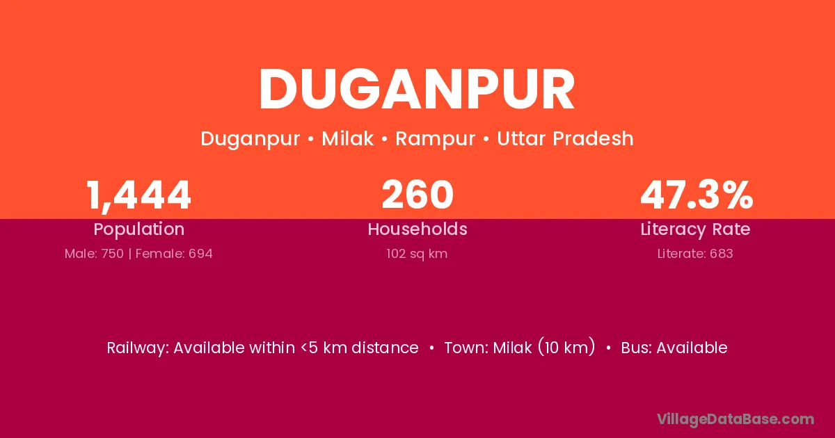 Milak (10 km) is the nearest town to Duganpur village for major economic activities and is located approximately 10 km away.