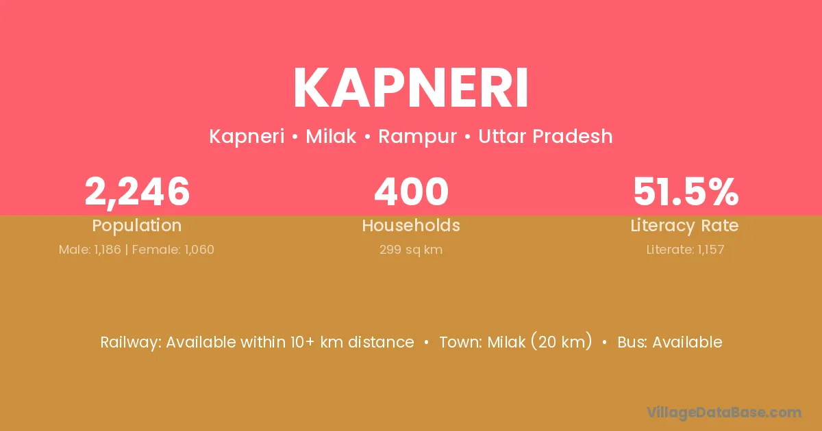 Kapneri village has a total population of 2,246 people, of which 1,186 are males and 1,060 are females.