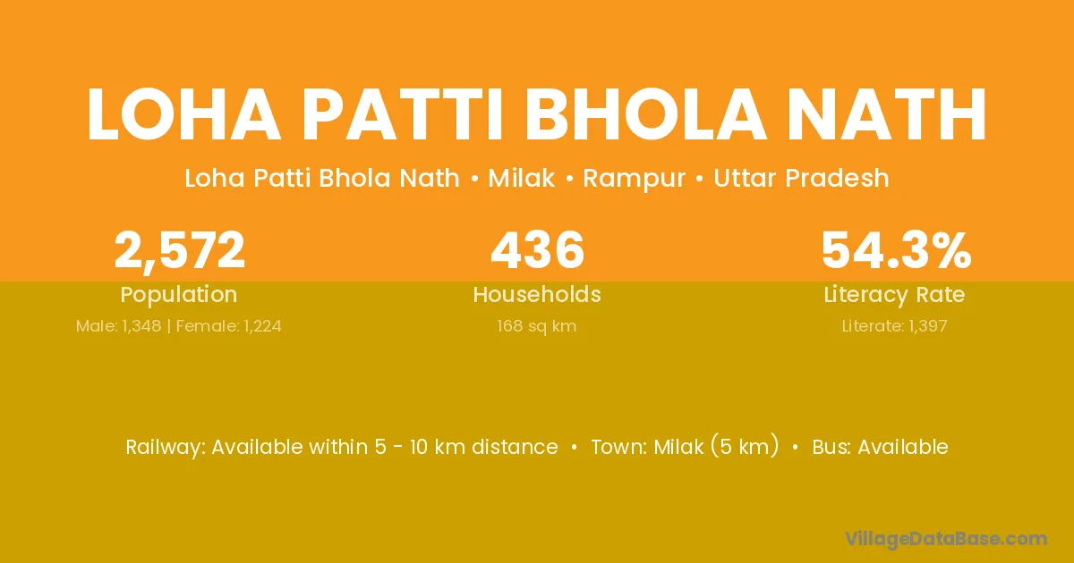 Milak (5 km) is the nearest town to Loha Patti Bhola Nath village for major economic activities and is located approximately 5 km away.