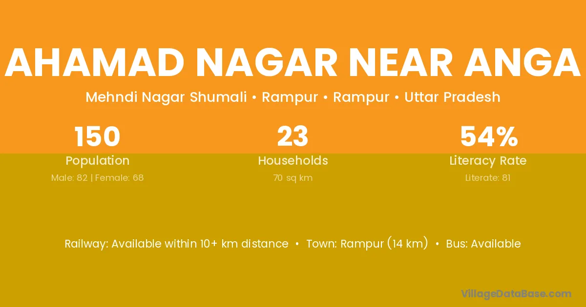 Rampur (14 km) is the nearest town to Ahamad Nagar Near Anga village for major economic activities and is located approximately 14 km away.