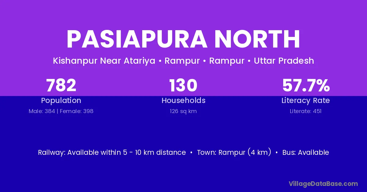 Rampur (4 km) is the nearest town to Pasiapura North village for major economic activities and is located approximately 4 km away.