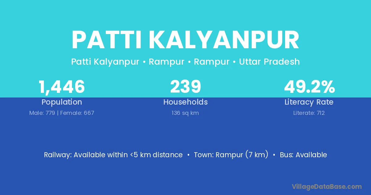 Rampur (7 km) is the nearest town to Patti Kalyanpur village for major economic activities and is located approximately 7 km away.