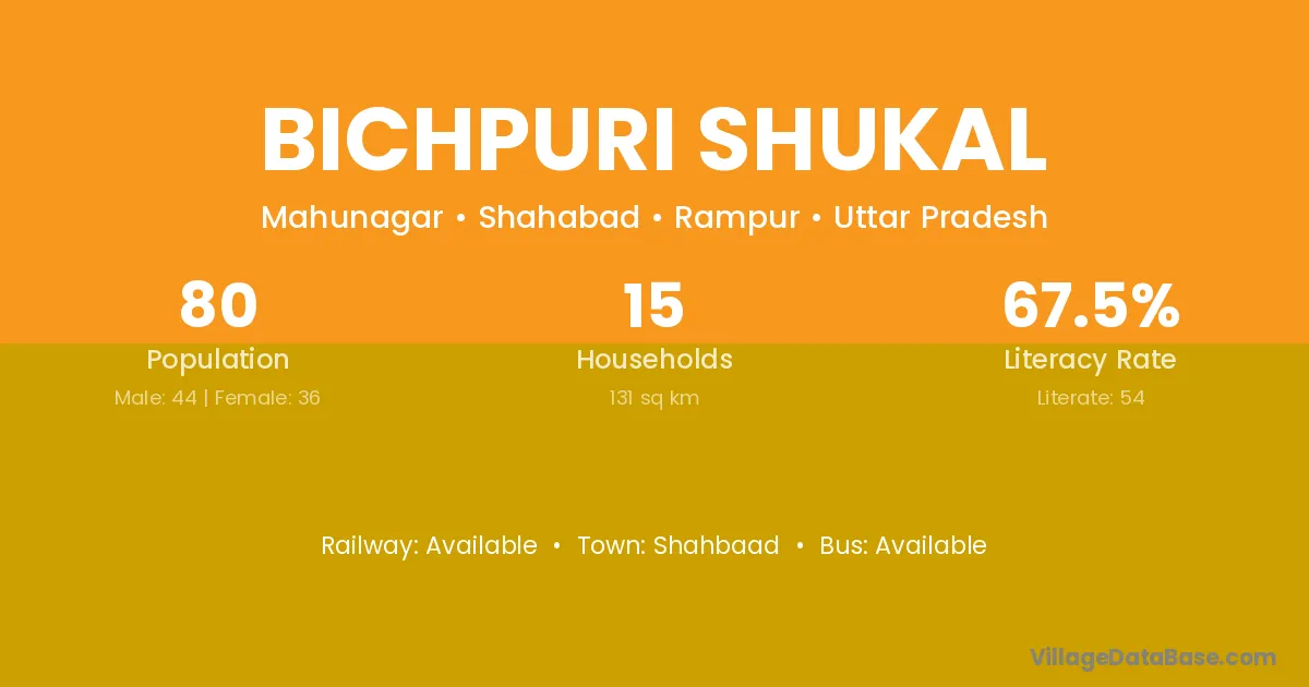 Bichpuri Shukal village has a total population of 80 people, of which 44 are males and 36 are females.