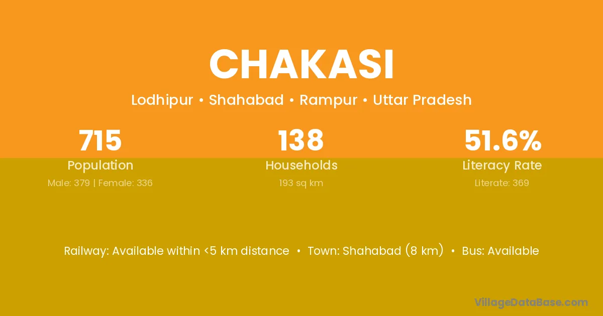 Shahabad (8 km) is the nearest town to Chakasi village for major economic activities and is located approximately 8 km away.
