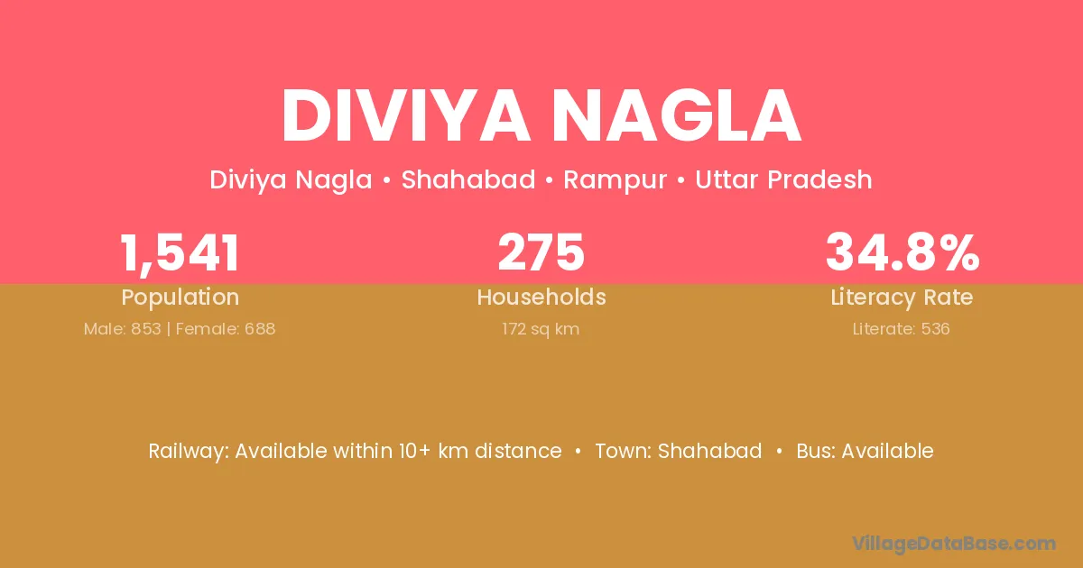 Diviya Nagla village has a total population of 1,541 people, of which 853 are males and 688 are females.