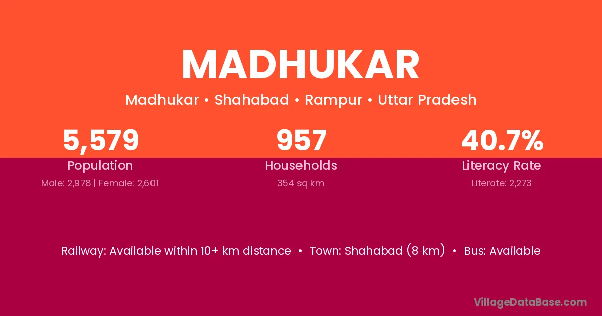 Shahabad (8 km) is the nearest town to Madhukar village for major economic activities and is located approximately 8 km away.