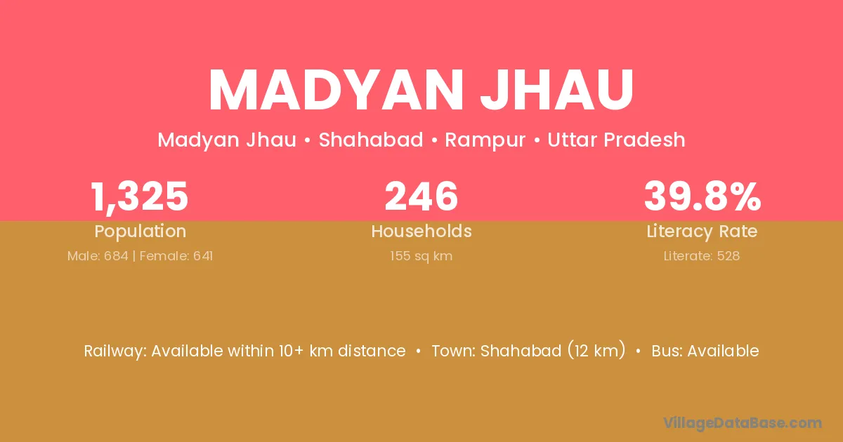 Madyan Jhau village has a total population of 1,325 people, of which 684 are males and 641 are females.