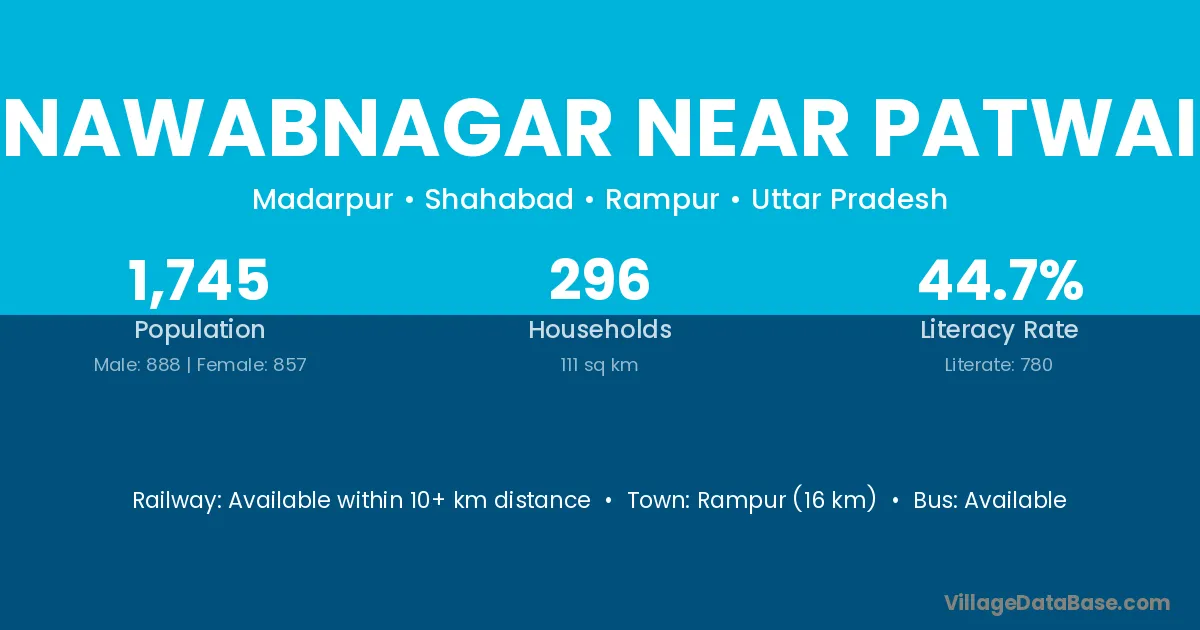 Nawabnagar Near Patwai village has a total population of 1,745 people, of which 888 are males and 857 are females.