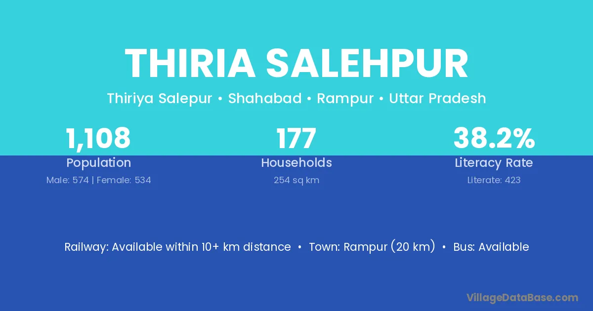 Rampur (20 km) is the nearest town to Thiria Salehpur village for major economic activities and is located approximately 20 km away.