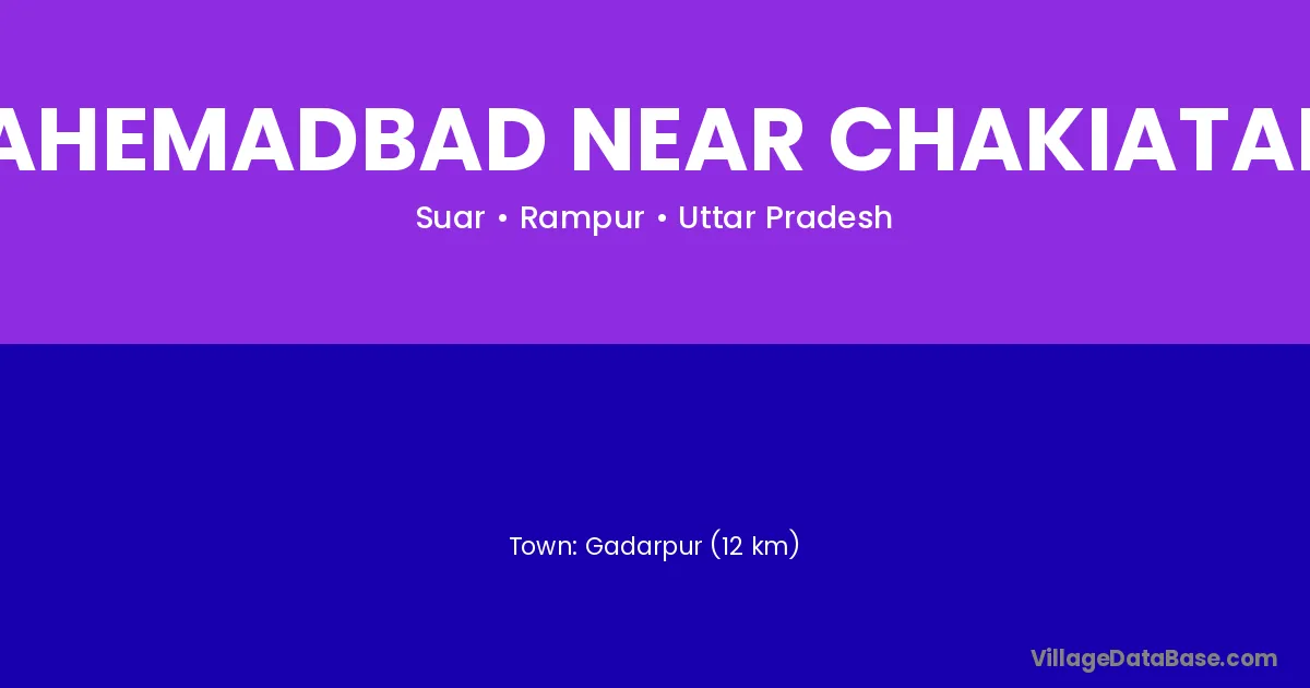 Gadarpur (12 km) is the nearest town to Ahemadbad Near Chakiatal village for major economic activities and is located approximately 12 km away.