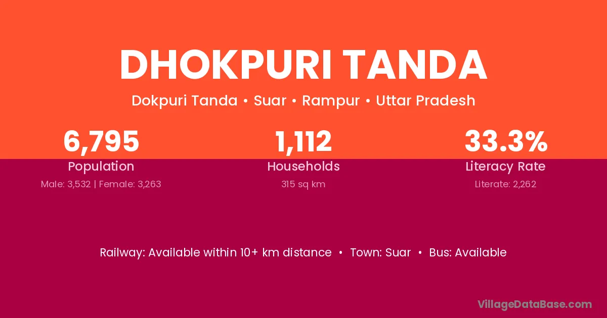 Suar is the nearest town to Dhokpuri Tanda village for major economic activities