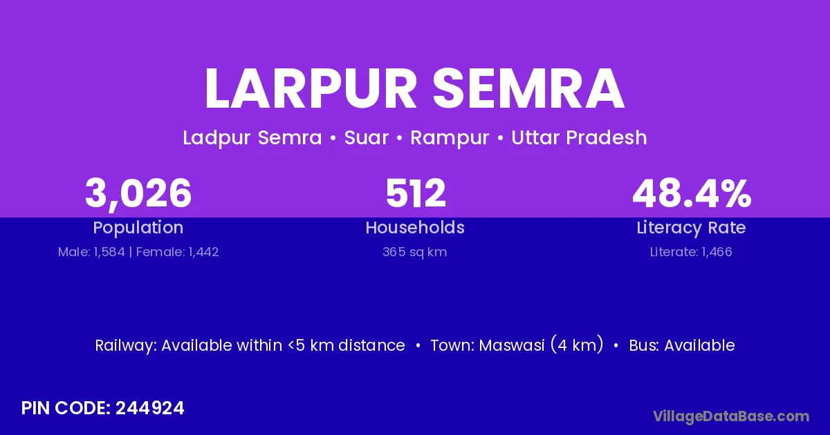 Maswasi (4 km) is the nearest town to Larpur Semra village for major economic activities and is located approximately 4 km away.