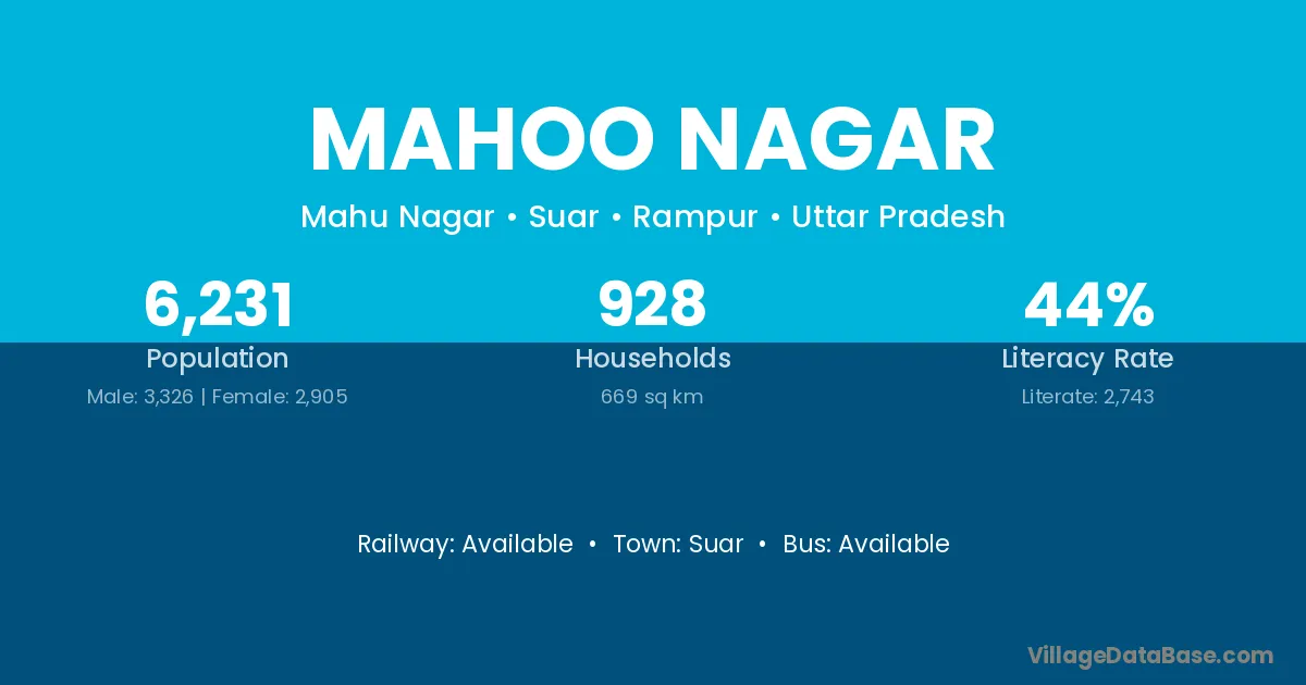Suar is the nearest town to Mahoo Nagar village for major economic activities