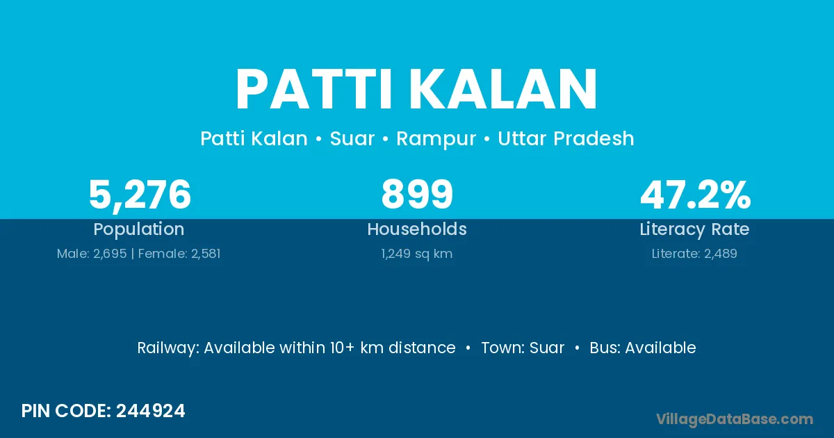 According to Census 2011 information, the village code of Patti Kalan village is 244924.