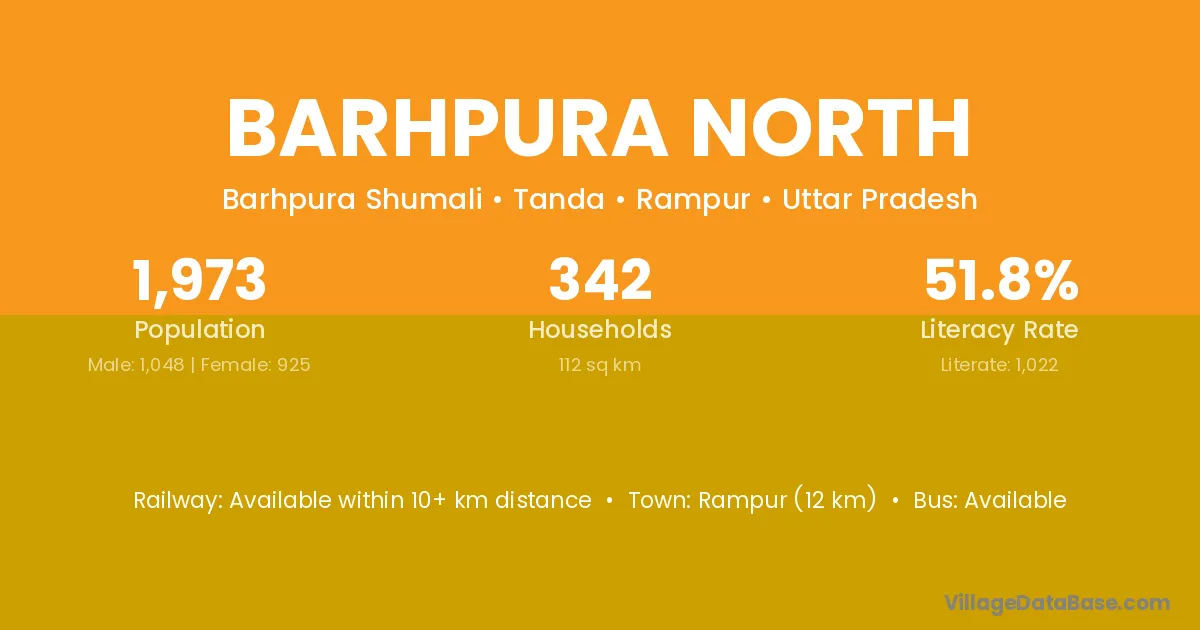 Barhpura North village has a total population of 1,973 people, of which 1,048 are males and 925 are females.