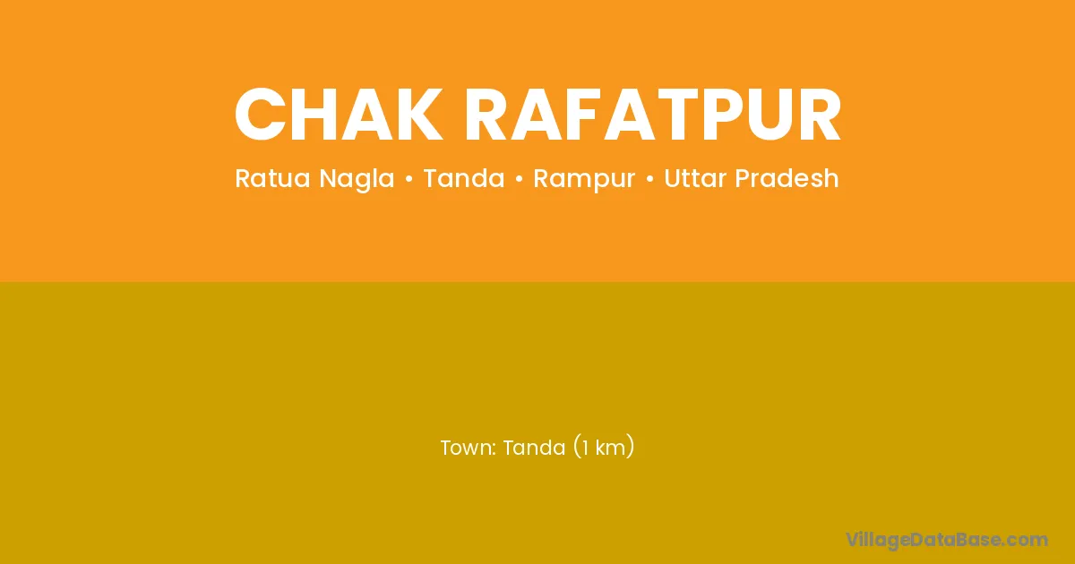 Tanda (1 km) is the nearest town to Chak Rafatpur village for major economic activities and is located approximately 1 km away.