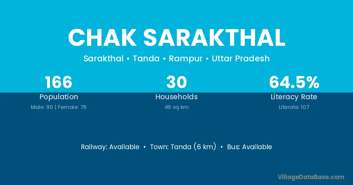 Tanda (6 km) is the nearest town to Chak Sarakthal village for major economic activities and is located approximately 6 km away.