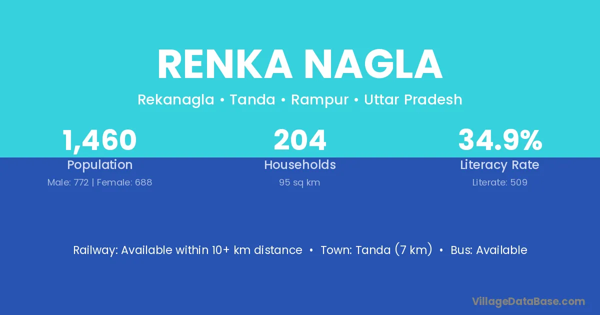 Tanda (7 km) is the nearest town to Renka Nagla village for major economic activities and is located approximately 7 km away.